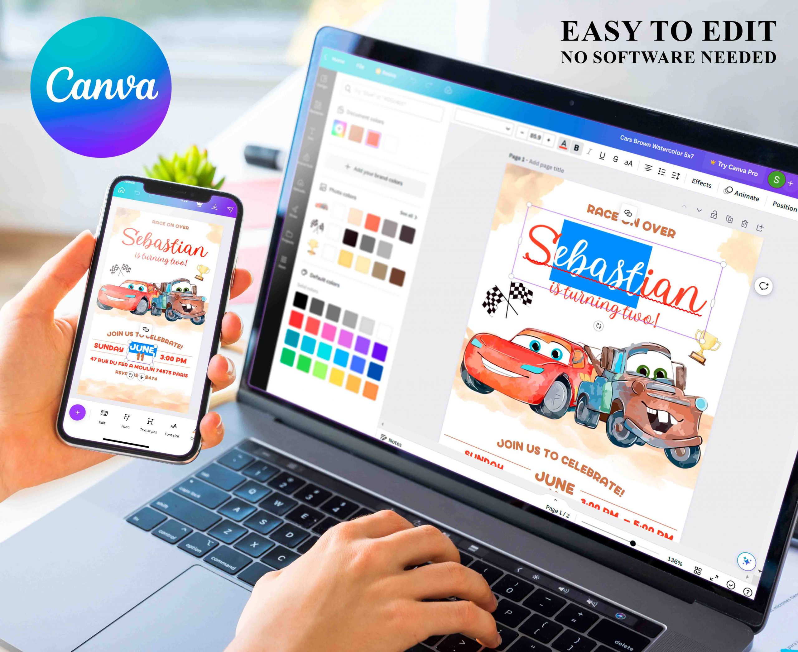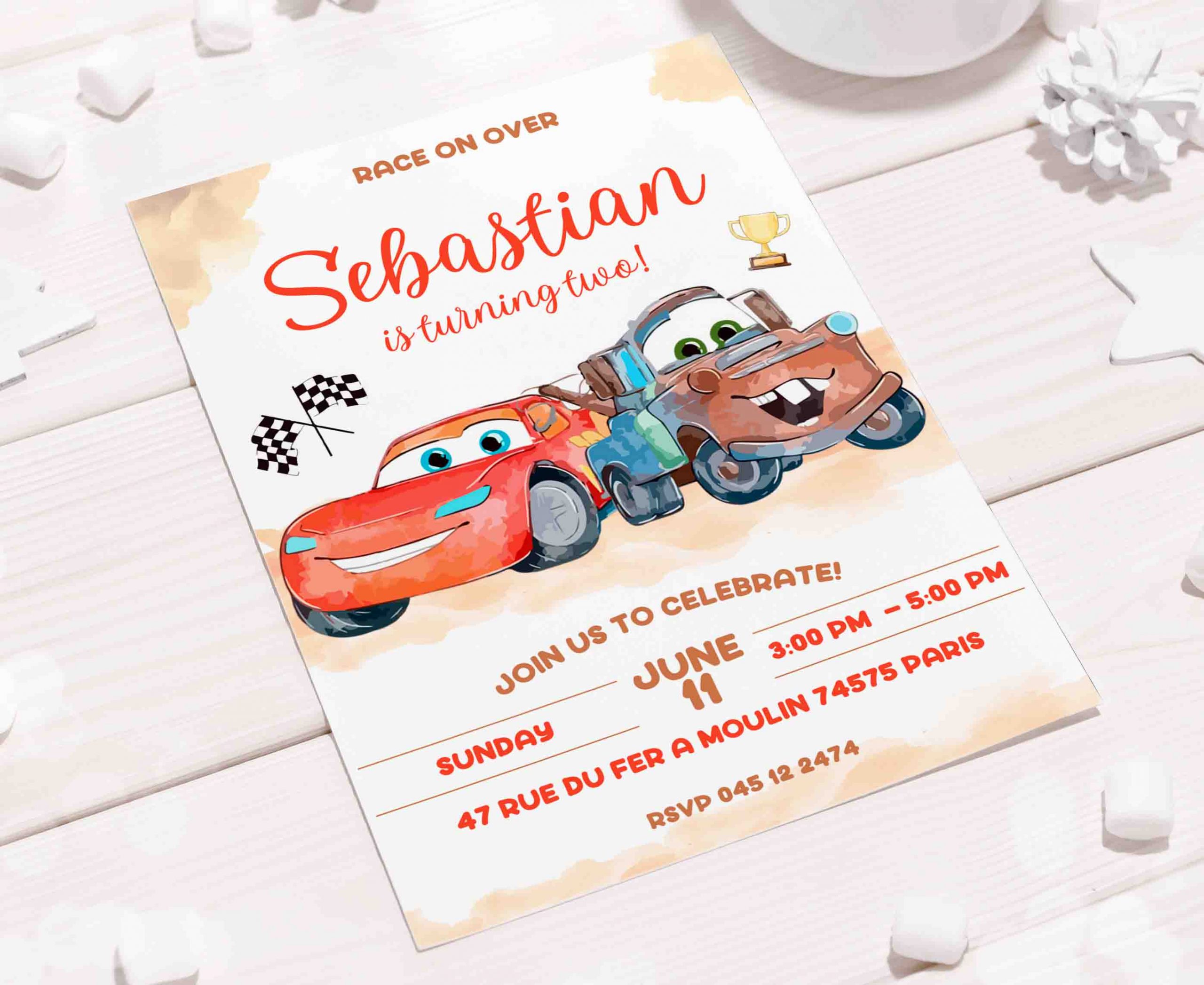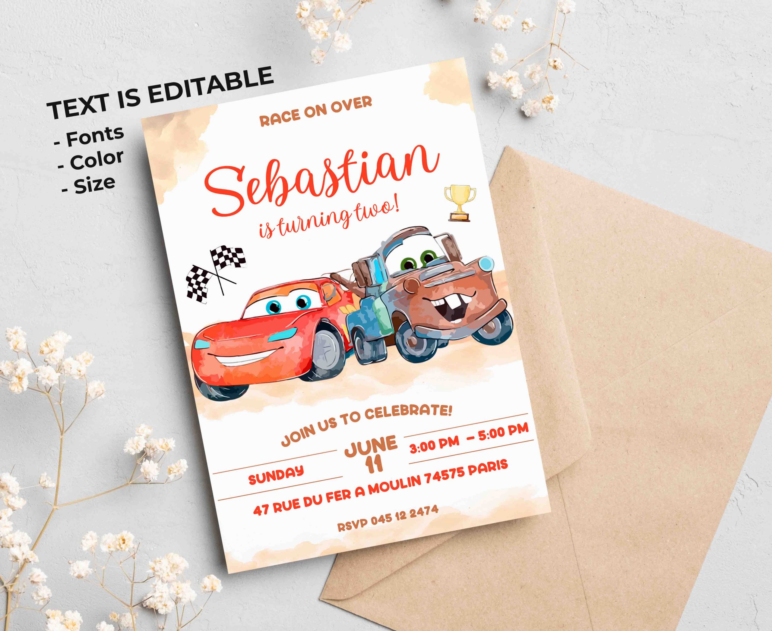 Be the first to review “Cars Mater Watercolor Editable Invitation Template”