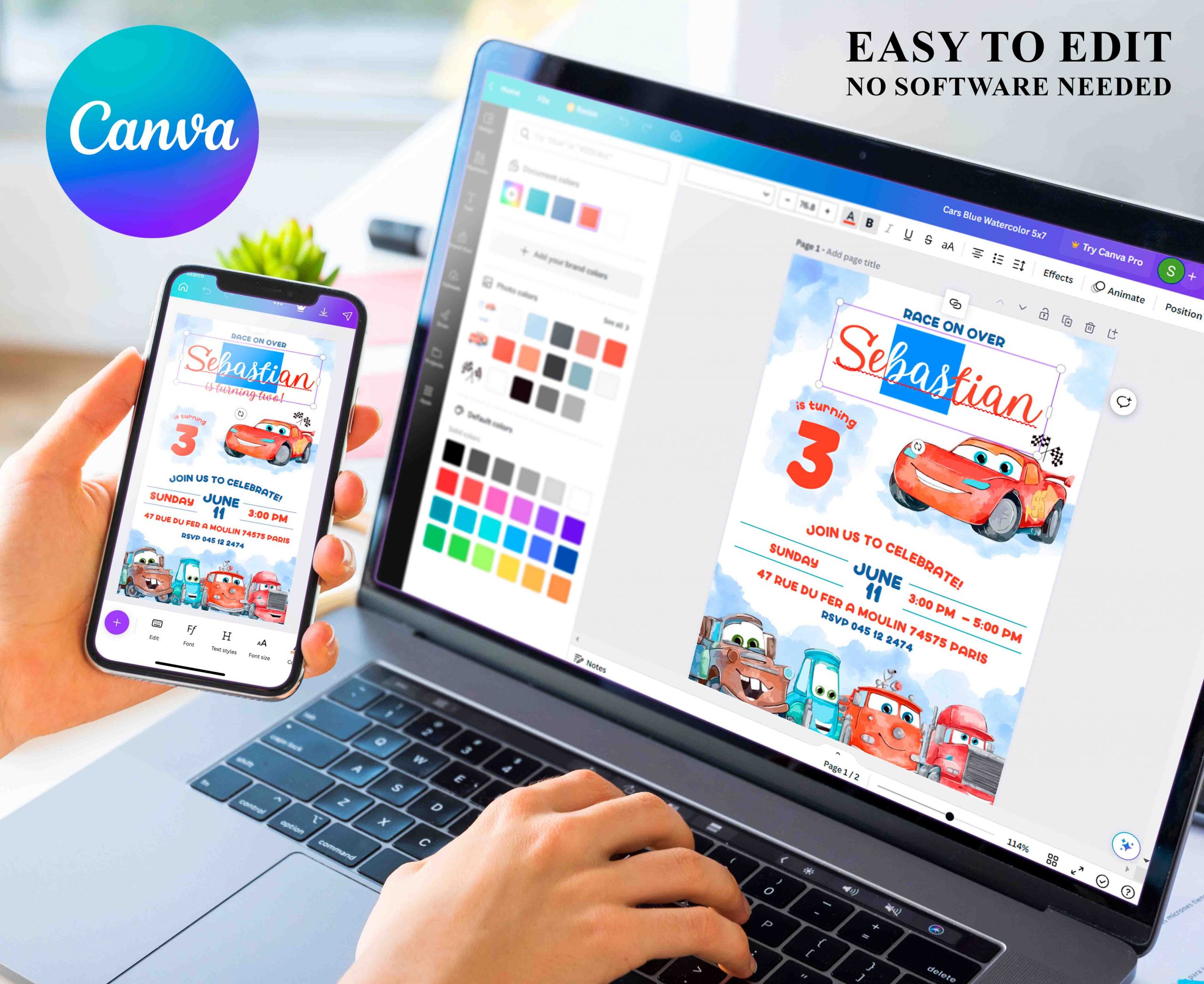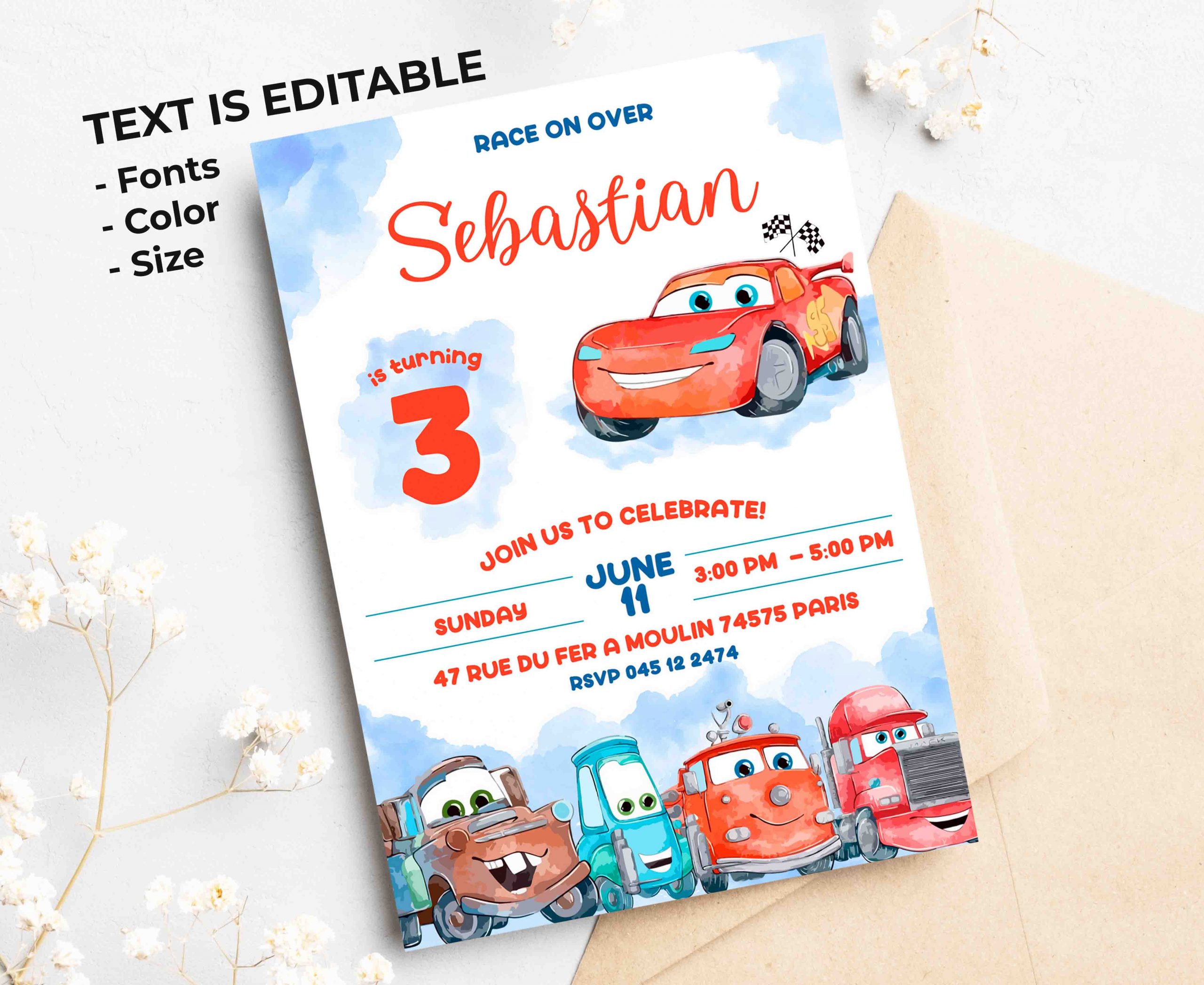 Be the first to review “Cars Watercolor Editable Invitation Template”