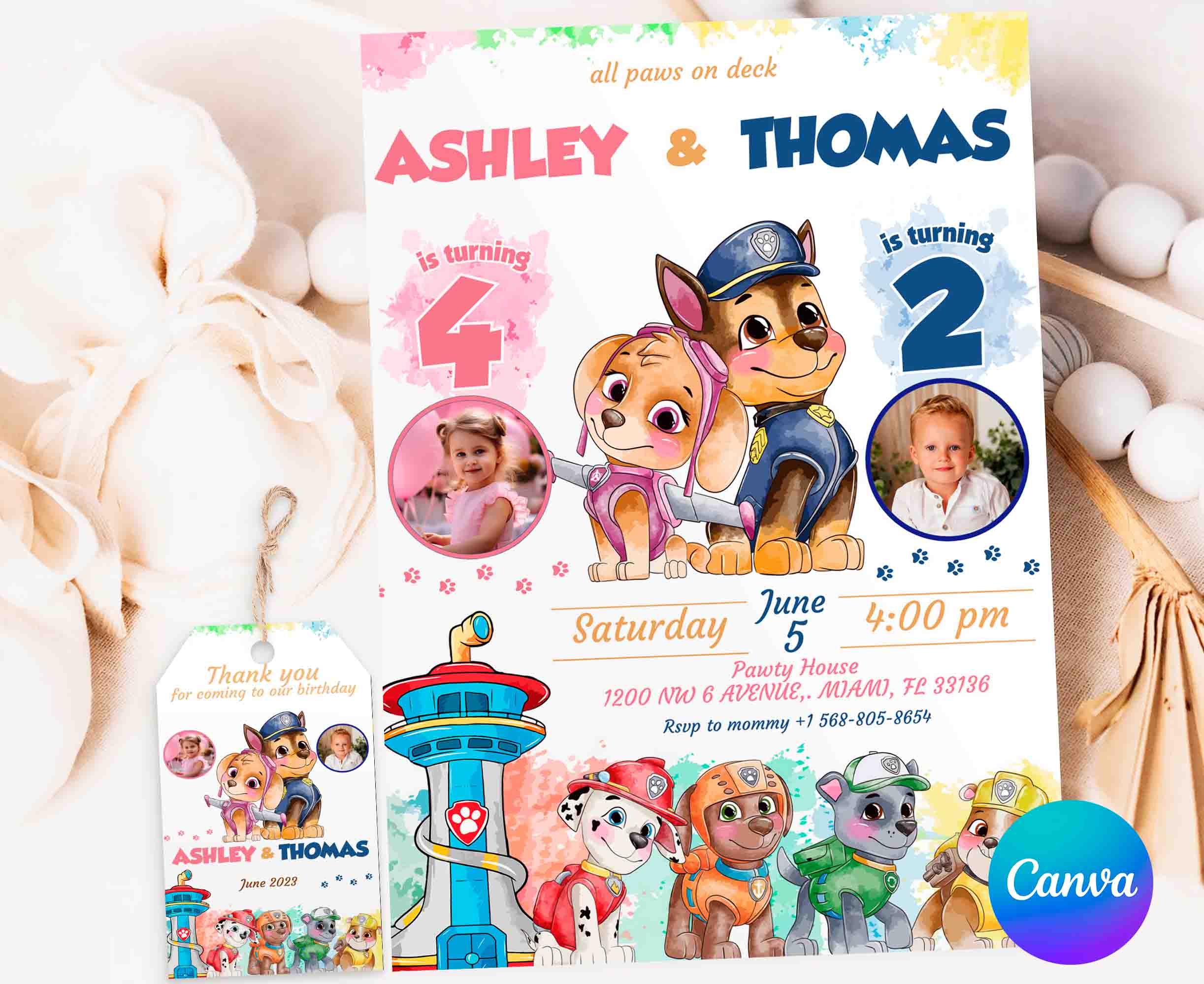 Be the first to review “Siblings Paw Patrol Editable Invitation Template”